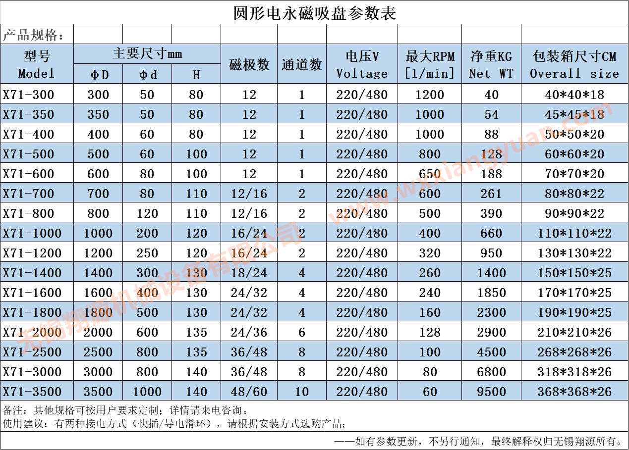产品名称:圆形电永磁吸盘